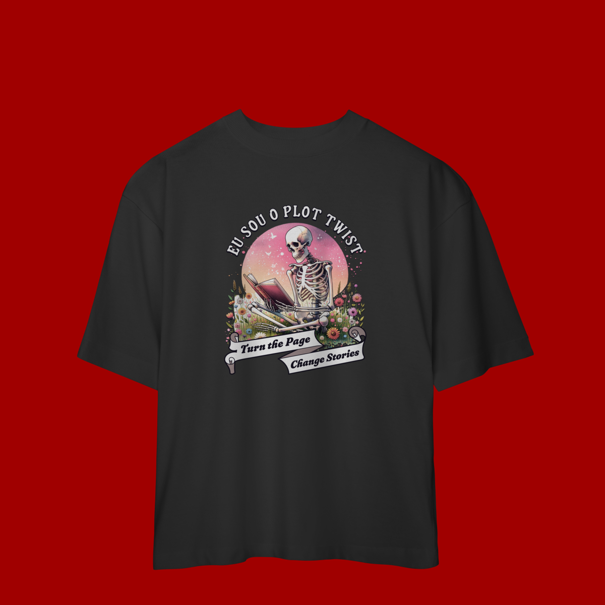 Perfeita para quem vive entre páginas, reviravoltas e um toque de escuridão. Esta camiseta oversized traz uma estampa impactante, unindo estética dark com humor inteligente e referência literária. A frase “Eu Sou o Plot Twist” imprime personalidade e deixa claro que você não é apenas parte da história, você é a virada inesperada.