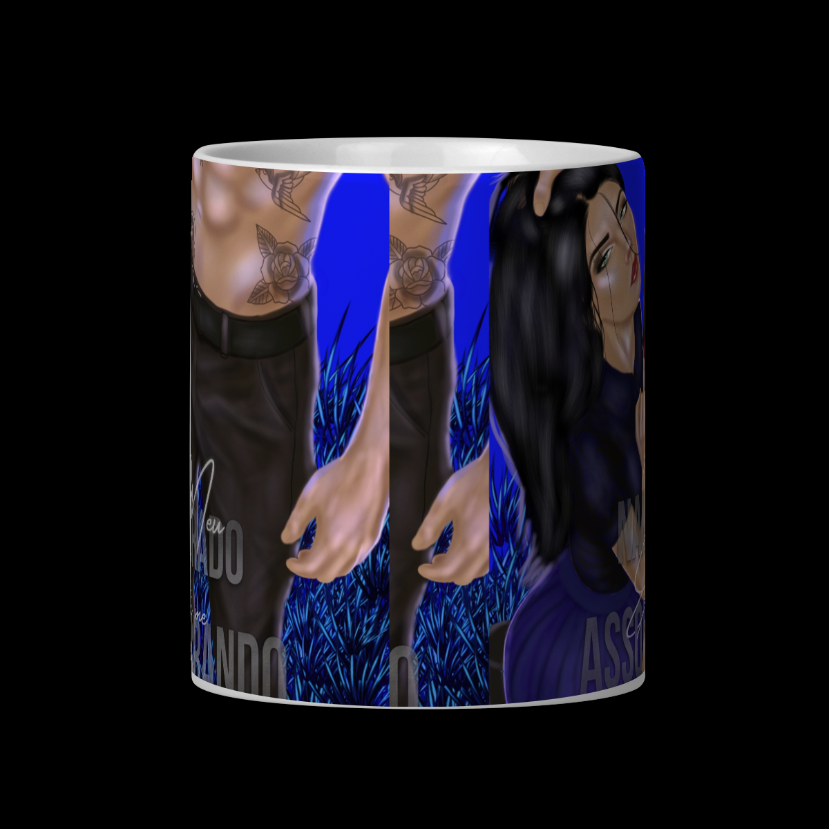 Caneca ilustrada Dark Romance de Kalan e Arabella, pensada para leitores que gostam de histórias intensas e relações perigosas.