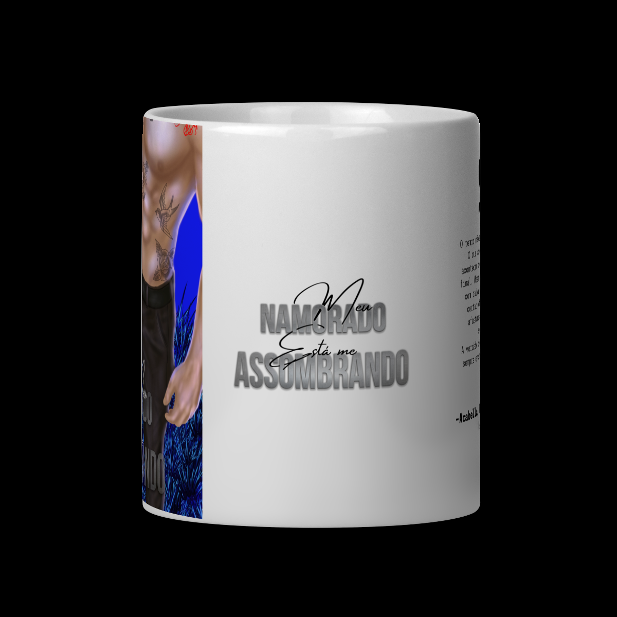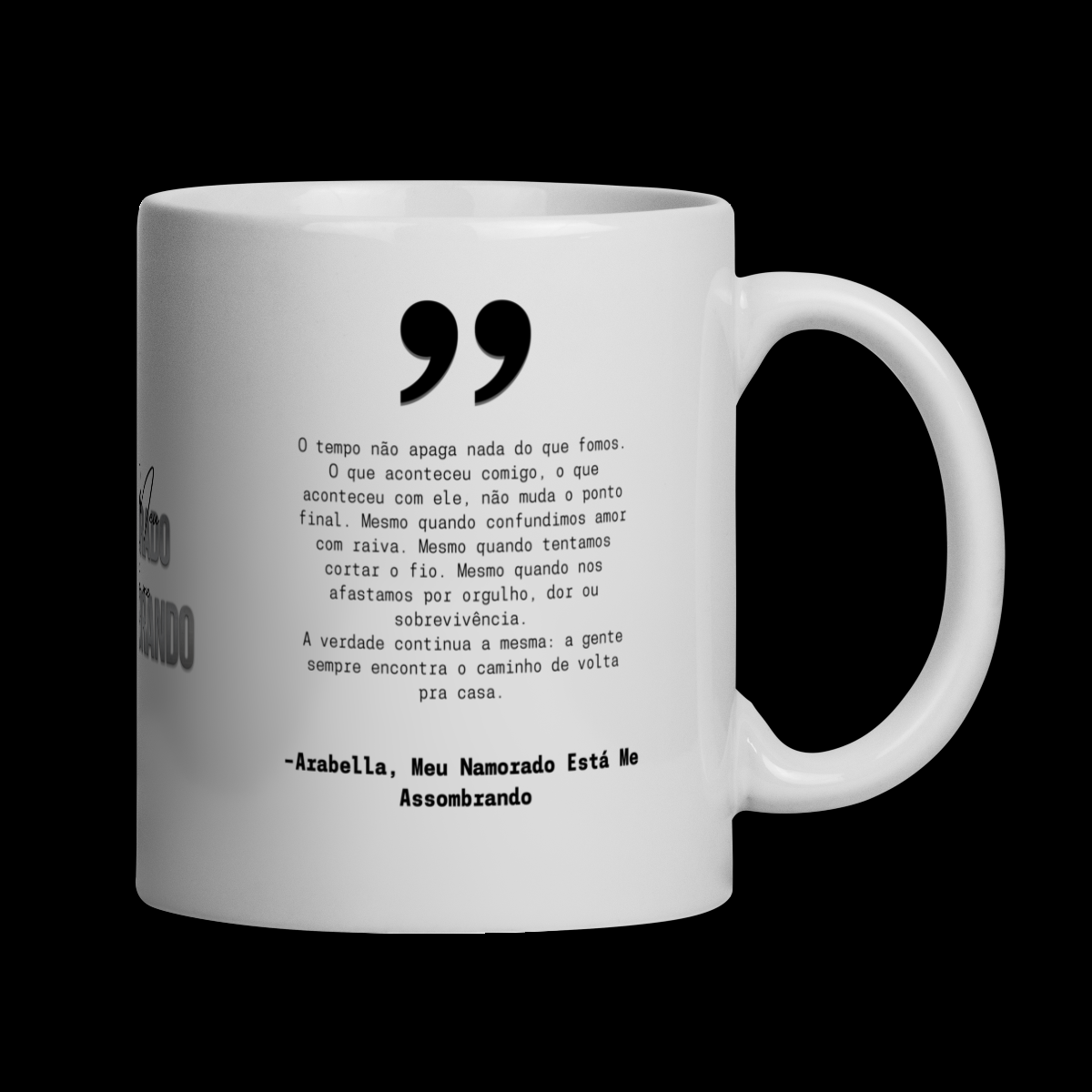 Caneca ilustrada com trecho do livro, criada para leitores que gostam de carregar a história para além das páginas.