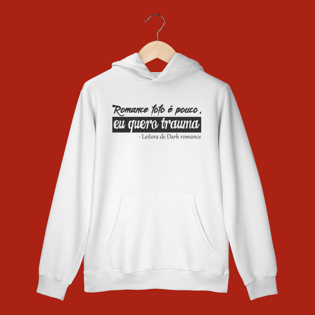 Moletom exclusivo com a estampa “Romance fofo é pouco, eu quero trauma - Leitora de Dark Romance”, feito para quem não se satisfaz com histórias leves. Confortável, quente e com caimento impecável, é a peça ideal para acompanhar maratonas literárias e a rotina do dia a dia. Produzido em material de alta durabilidade e estampa resistente, traduz com humor e personalidade a verdade de toda fã do gênero: quanto mais intenso e destruidor, melhor.