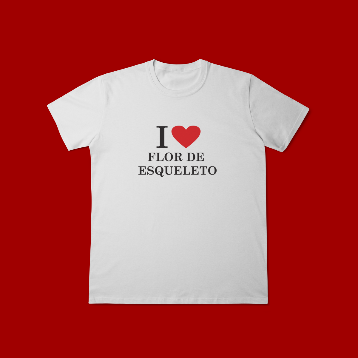 A T-shirt “I love flor de esqueleto” é produzida em tecido macio e respirável, ela oferece conforto e durabilidade sem perder o estilo.
