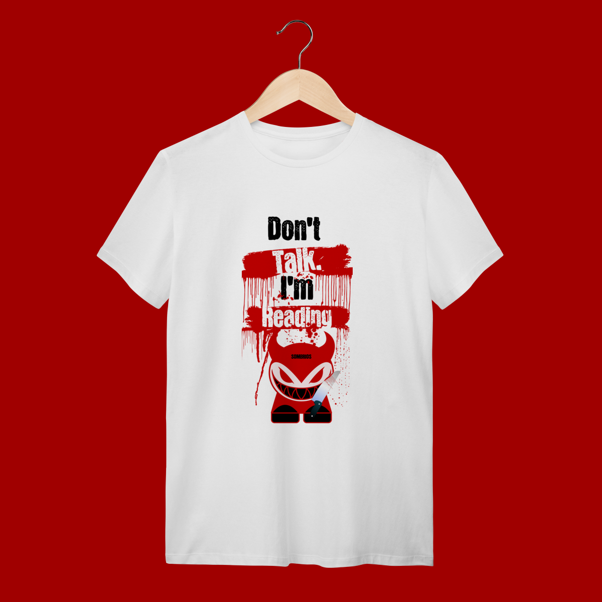 Estilosa, confortável e cheia de atitude, esta t-shirt é feita para leitores que não têm medo de mandar o recado. Com a frase “DON´T TALK. I´M READING” estampada de forma marcante, ela combina humor e personalidade, tornando-se perfeita para o dia a dia, para eventos literários ou simplesmente para quem quer mostrar seu amor pelos livros. Leve, versátil e ideal para todos os estilos de leitores.
