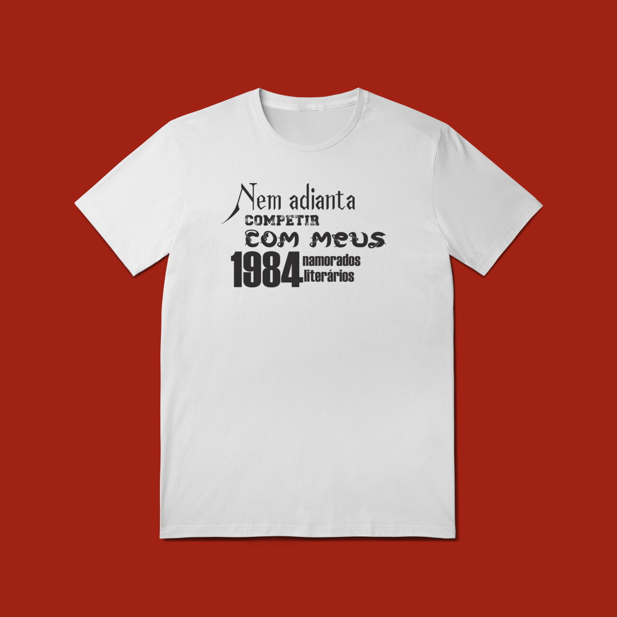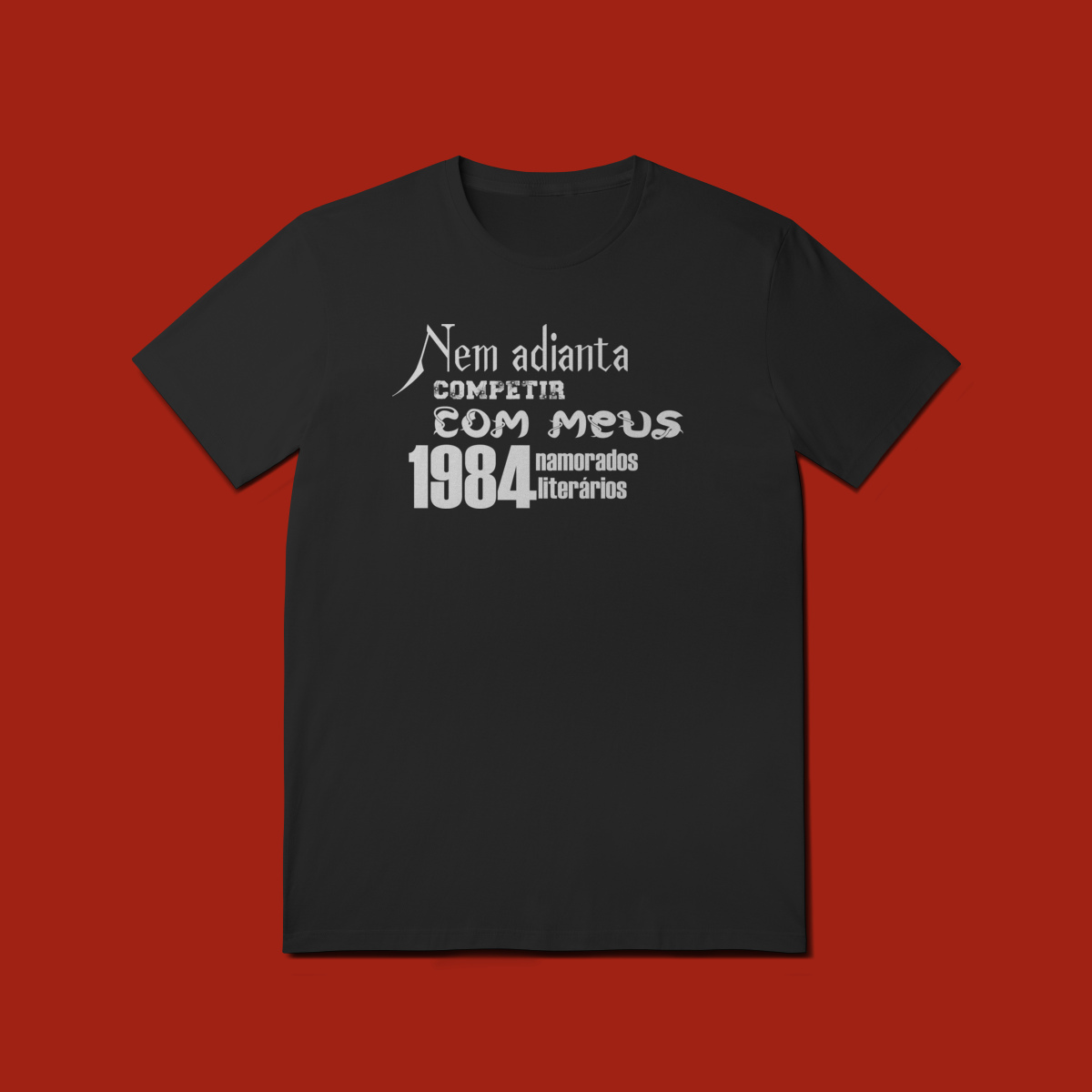 T-shirt Quality com a estampa “Nem adianta competir com meus 1984 namorados literários”, criada para leitoras que sempre se apaixonam pelos personagens certos… ou pelos mais problemáticos. Confeccionada em tecido de alta durabilidade, toque macio e modelagem confortável, é perfeita para usar no dia a dia e nas sessões de leitura intensas. A impressão de excelente qualidade garante longa vida à frase que representa o coração de toda leitora apaixonada: ninguém supera os namorados que vivem nas páginas. Uma peça divertida, estilosa e cheia de personalidade, do jeitinho que o universo literário merece.