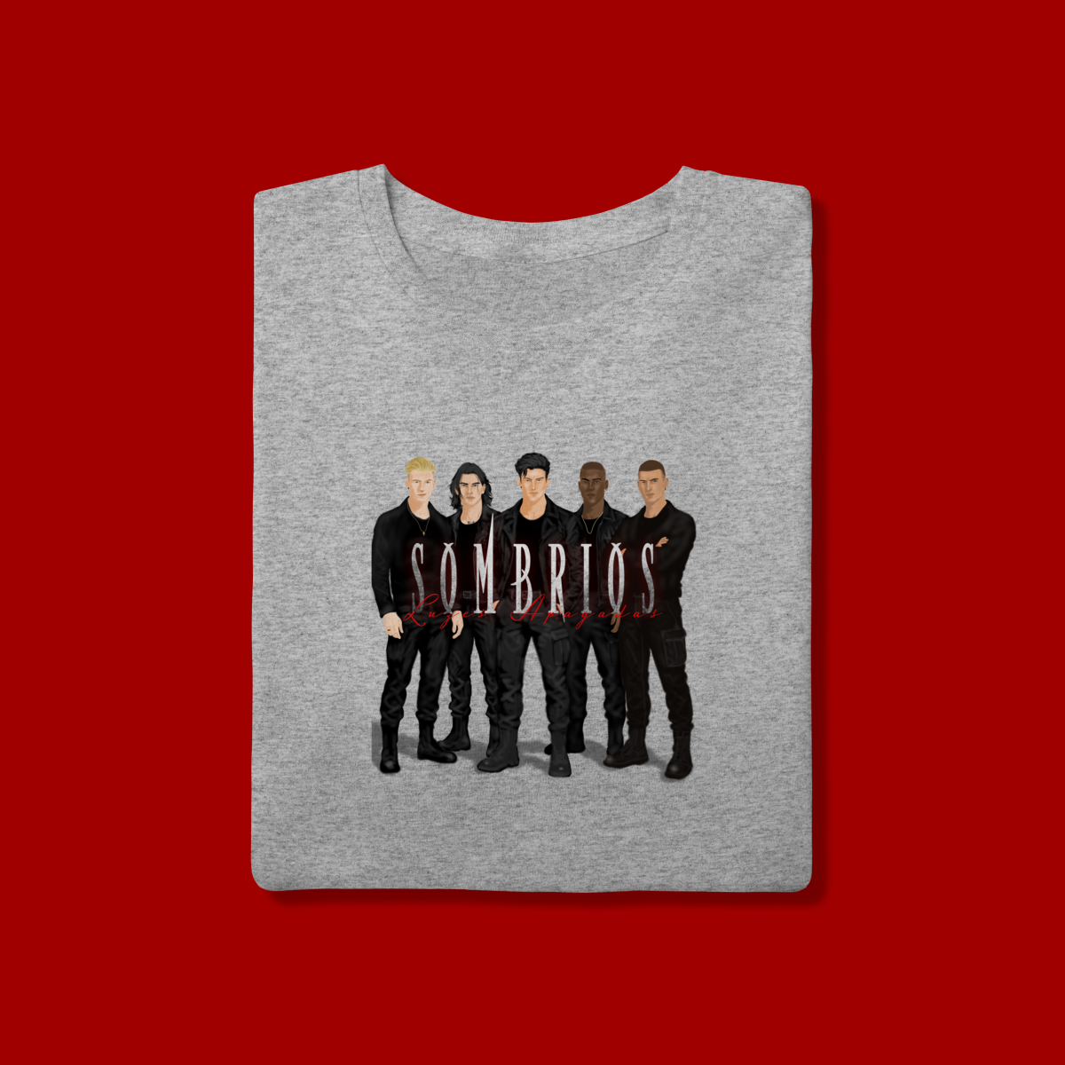 Mergulhe no universo misterioso de Sombrios com esta camiseta exclusiva inspiradora, o enigmático grupo protagonista criado por Ellise H.A. A estampa traz um desenho marcante que captura a essência sombria e intensa dos personagens.
